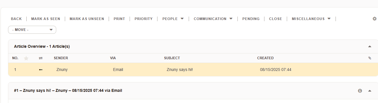 Marks all articles and the ticket as “seen” by you, which removes the “unseen” indicator in ticket overviews.