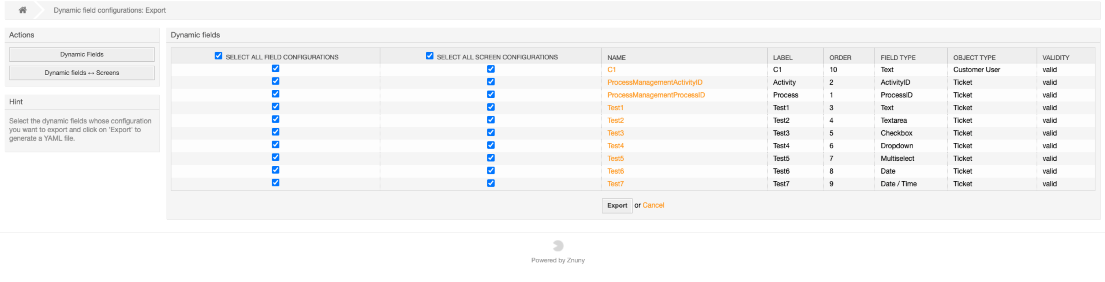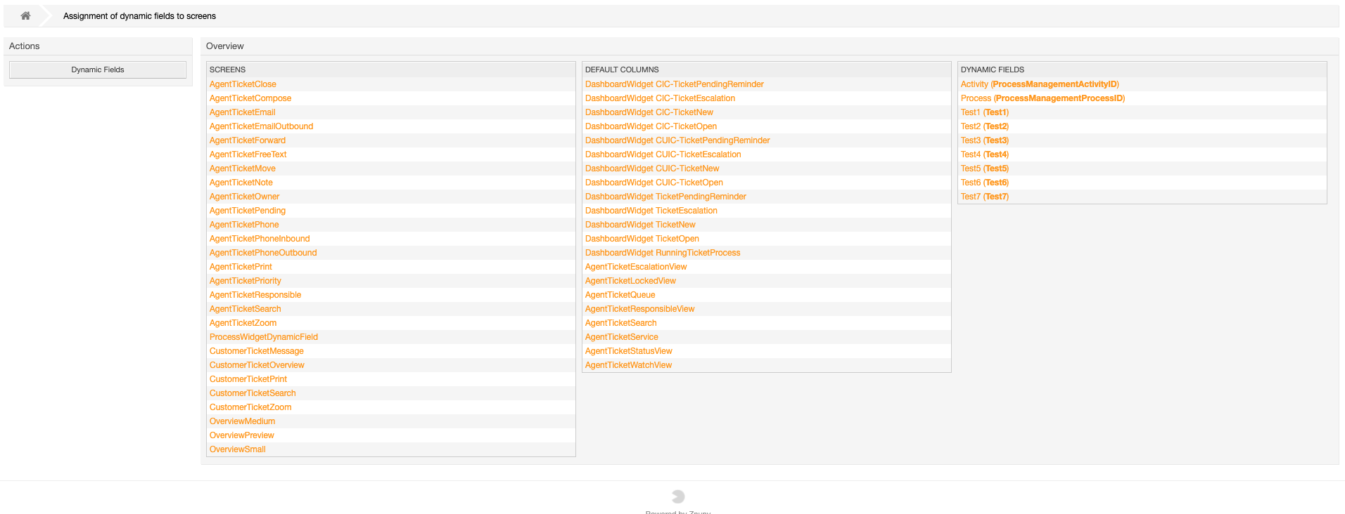 Dynamic Field screens is a GUI to assign Dynamic Fields to specific views. With the embedded import/export functions, it makes staging between different environments much easier.