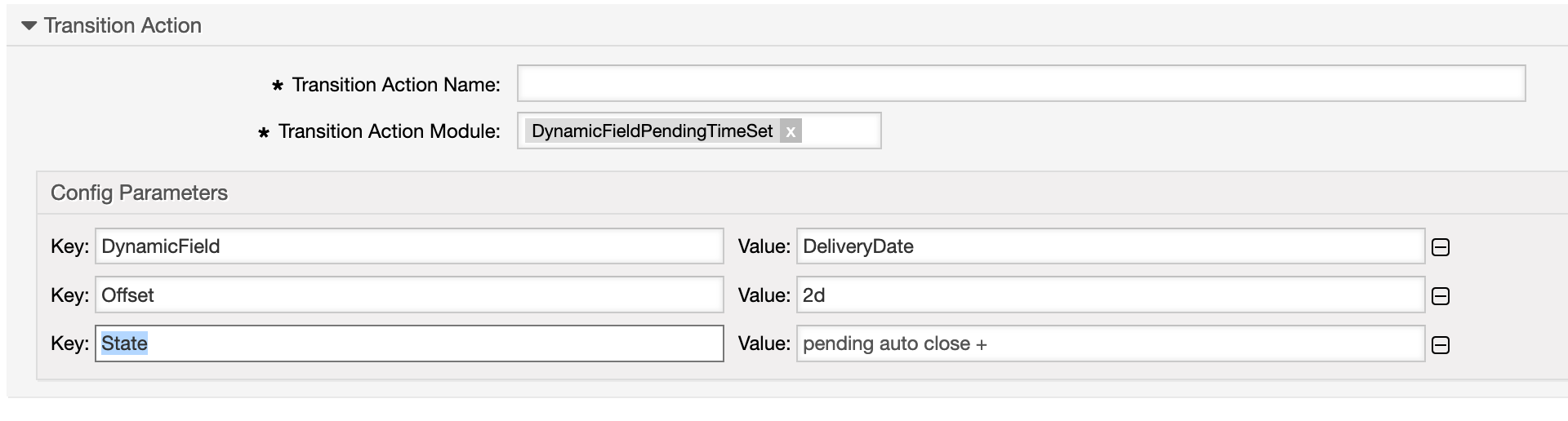 The screenshot depicts setting the state to pending auto close+ two days after the date set in “DeliverDate”.