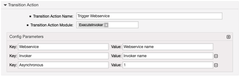 Use this transition action to set trigger a web service invoker. This will allow the software to consume a web service an work with any response during a trasition.